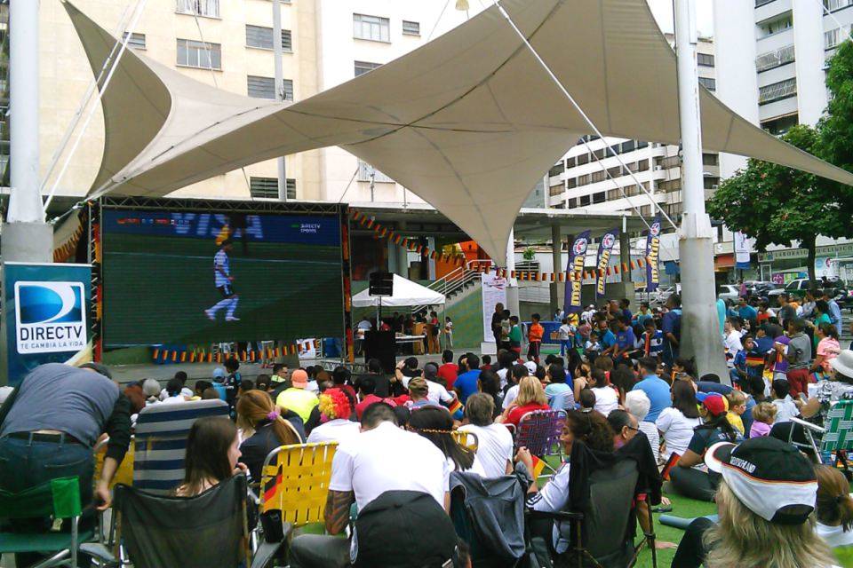 La opción que más atrae al público caraqueño son las actividades que han organizado centros comerciales, embajadas y alcaldías, que han ubicado pantallas gigantes al aire libre para los amantes del deporte y sin costo alguno.