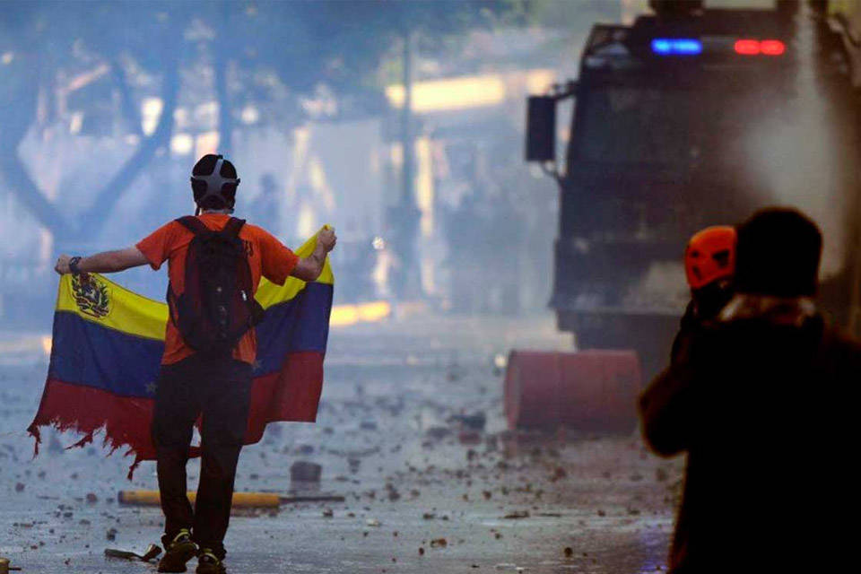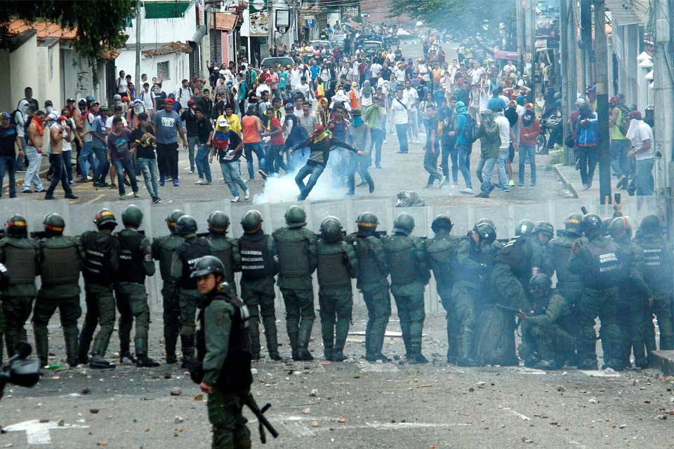 Batallas campales entre fuerzas de seguridad y grupos de manifestantes que respondían con piedras y cócteles incendiarios se adueñaron de muchas calles de Venezuela.