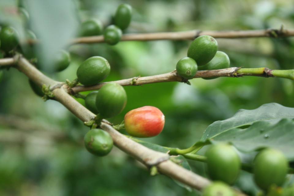 El fruto del café se tiñe completamente de rojo cuando está maduro – Foto: Ariadna García