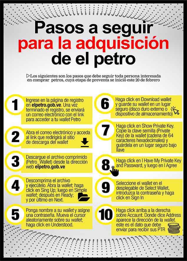 Son al menos 10 los pasos que debe cumplir para poder optar a la compra de petros, la nueva criptomoneda venezolana que salió a la venta este 20 de febrero