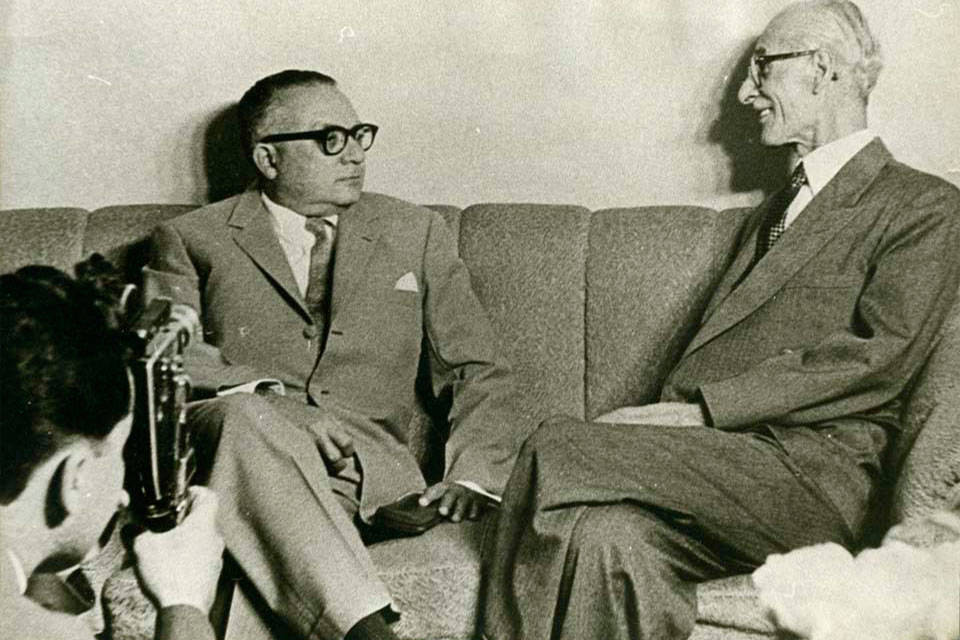 Son también dos ex presidentes. El de la izquierda es Rómulo Betancourt en algún momento de su segundo paso por Miraflores, entre 1959 y 1963. El de la derecha es el general Eleazar López Contreras, presidente legatario del gomecismo entre diciembre de 1935 y 1941.