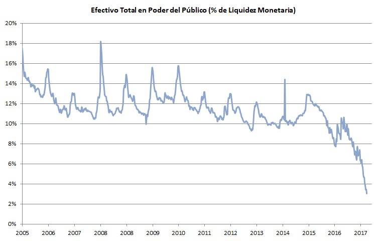 Efectivo alcanzó su menor nivel en casi dos décadas