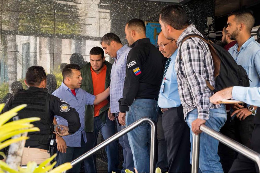 Subió del salón a la planta baja del hotel, allí lo esperaban los policías del Sebin. En la puerta principal, un custodio quiso esposarlo, éste se volteó le dijo que no era necesario, pero con mala cara, y el General de Brigada, que estaba más nervioso que Rodríguez Torres, hizo una seña para que no lo hicieran.