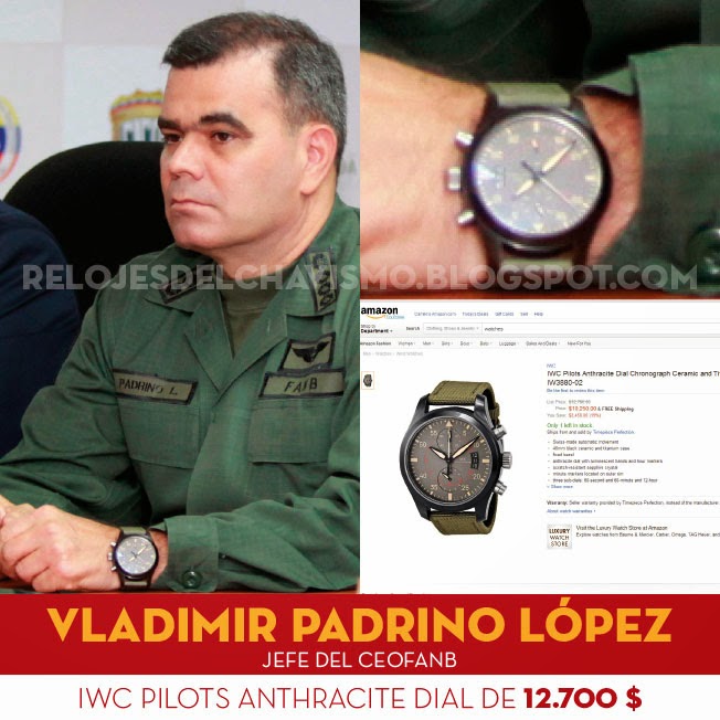 Es más, lo que recibió Unichauchos Lara C.A., la persona jurídica con el monto más abultado, apenas alcanzaría para financiar la compra de un costoso reloj importado IWC Pilots Anthracite Dial, que se le ha visto al ministro Vladimir Padrino López, según el blog Relojes del chavismo.