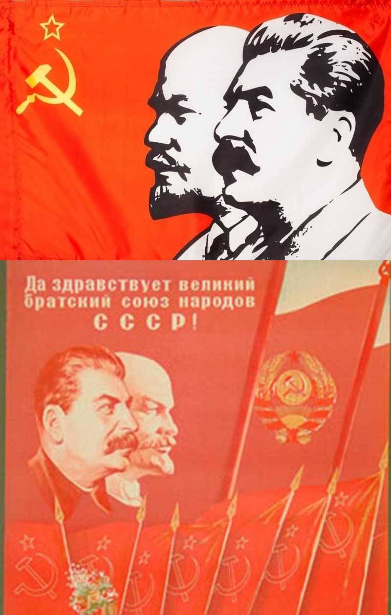 El diseño es similar a las banderas de Stalin y Lenin que tanto se usaron en la propaganda comunista. Y en propaganda, nada es casual. Aquí los ejemplos: