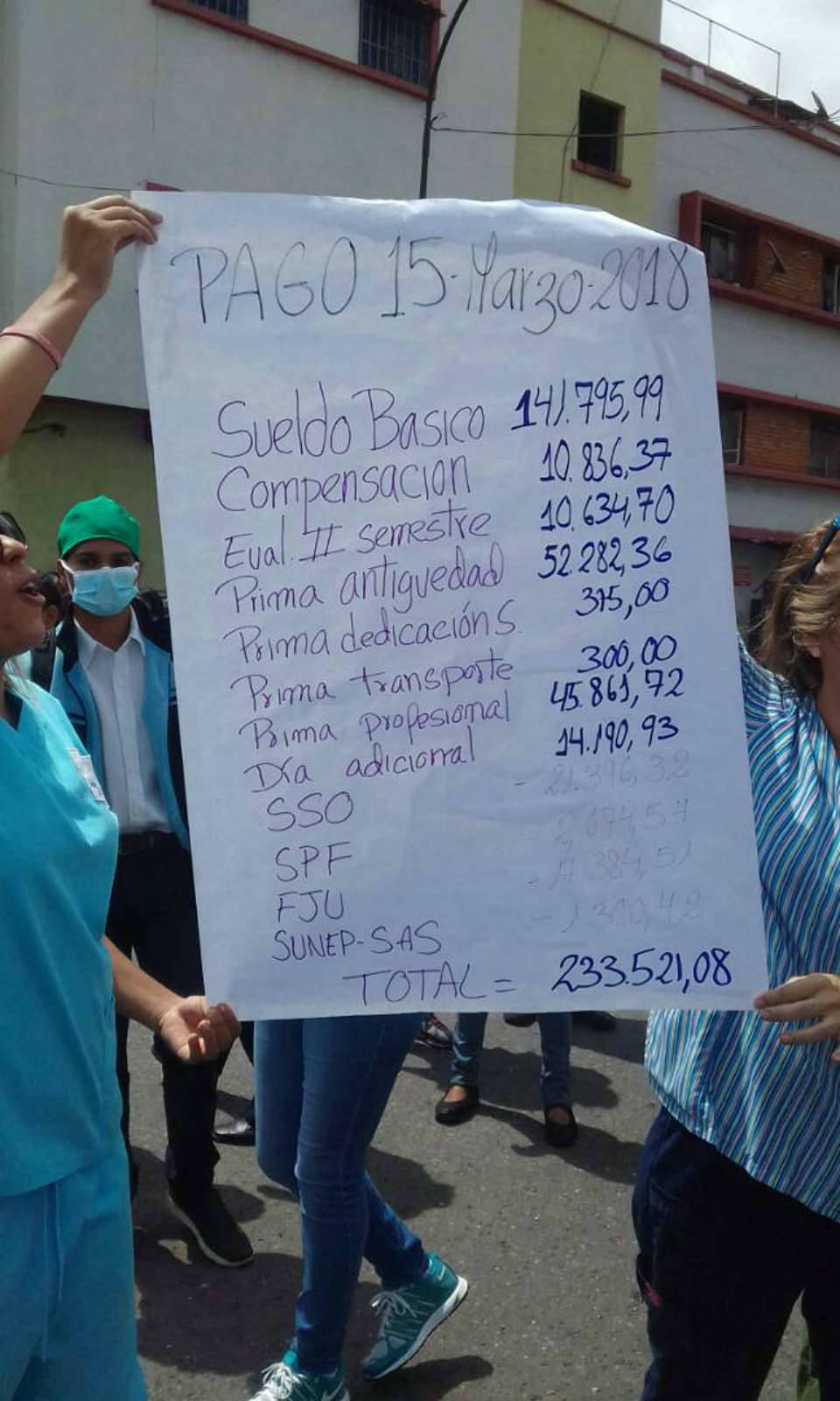 Otra de las quejas de los profesionales de la salud son los sueldos que percibe, debido a que el mismo no alcanza para mantener una mejor calidad de vida y que ha provocado muchas deserciones en los centros de salud en Venezuela.