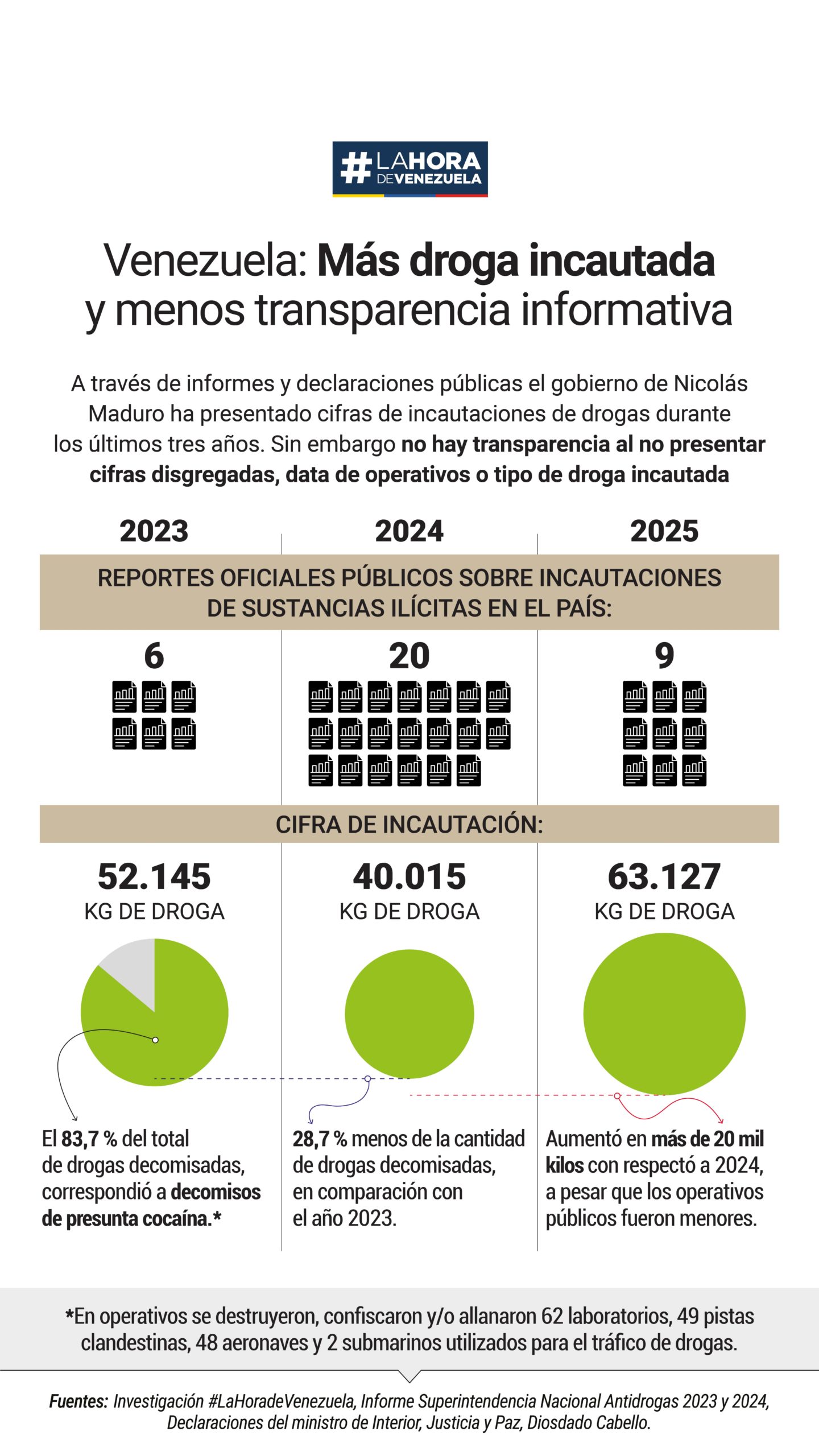Desde #LaHoradeVenezuela analizamos el contexto que nos ha llevado a este escenario y se intenta verificar qué impacto han tenido las incautaciones, en cuanto a las cifras ofrecidas desde Venezuela y Estados Unidos.