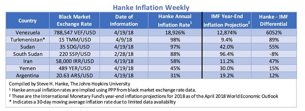 Venezuela encabeza estudio Hanke con una inflación anual de 18.926%